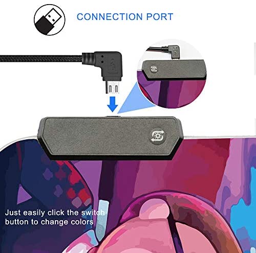 Micro usb charging: The RGB mouse pad was powered by Micro USB. Plug and play, no drive and one-touch control makes it convenient to switch the colors.