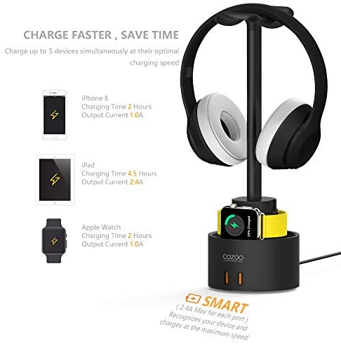 【What You Get】 COZOO Headphone dock / 5-Port USB Charger, 5ft / 1.5m Integrated Power Cord , 24-Month COZOO warranty & 90-DAY money back guarantee.If there is any quality issue for this headphone rack or you are not happy with your purchase, please do not hesitate to contact us.