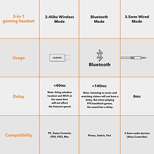 Extremely long usage time – NUBWO gaming headset can last 30-47 hours on a full charge. A low battery tone will prompt you to recharge when the battery level falls below 3%. A full charge takes only 4 hours.