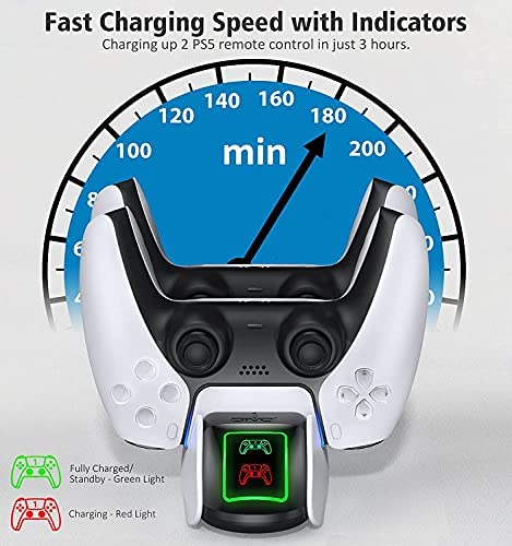 Safe & Reliable: The Charging station benefit from an intteligent protective chip, designed to prevent to over-current, over-heat,over-voltage, short-circuit as a precaution. Never over charge your PS5 controllers.
