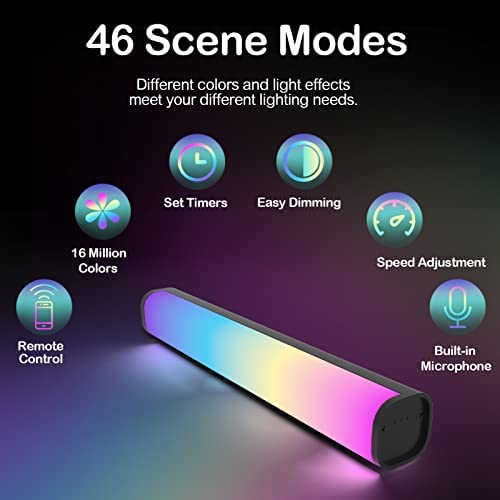 Smart Light Bar, 2 Pack RGB Smart LED Light Bars with 46 Scene and Music Modes, Gaming Lights that Sync with TV Backlight, LEDs RGB Color Changing Lighting for Movies, Gaming, Bedroom, Room Decor