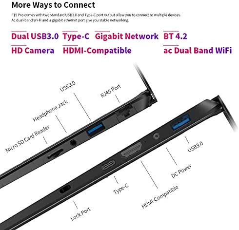 F15PRO laptop takes full advantage of the 802.11ac wireless transmission protocol to adapt to the global frequency band. In addition, USB 3.0, Micro-HDMI, fast charging DC port, headphone jack, Micro SD card slot, provide a perfect connection for multifunctional flexibility.
